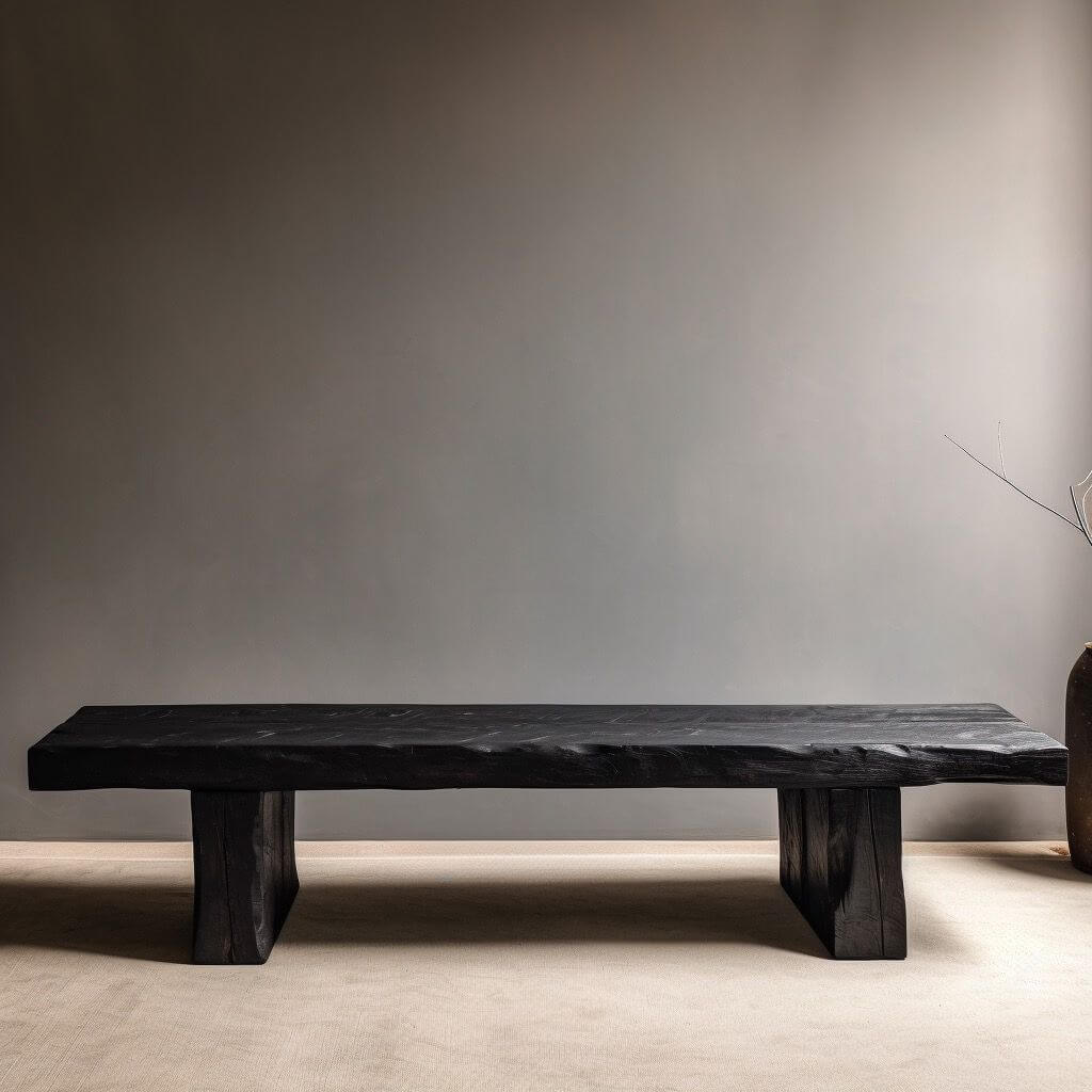 A striking fusion of ancient Japanese craftsmanship and modern minimalist design, this living room bench invites quiet presence into your space — whether placed beneath a sun-dappled window, anchoring a serene entryway, or serving as a sculptural accent beside a low-slung sofa. Its deep, velvety black surface—born not from paint but from controlled fire—exudes warmth, texture, and timeless restraint. You’ll feel the subtle grain ridges under your fingertips, sense the grounded stillness of its low profile, and appreciate how its raw elegance softens sharp interiors while adding quiet authority to open-concept rooms.