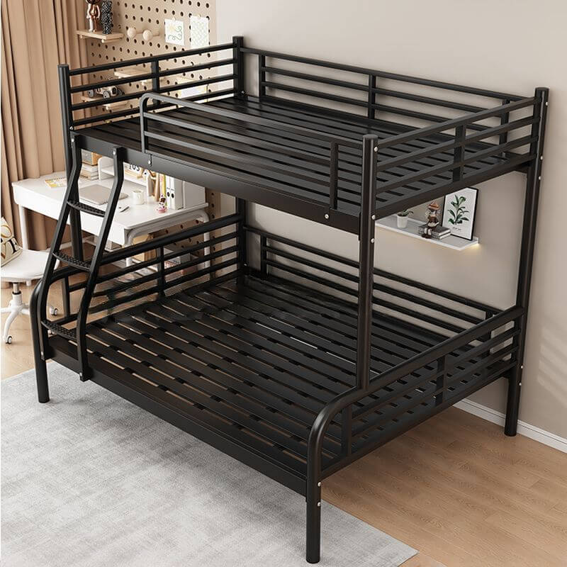 Modern Iron Bunk Bed with Guardrails and Built-In Ladder