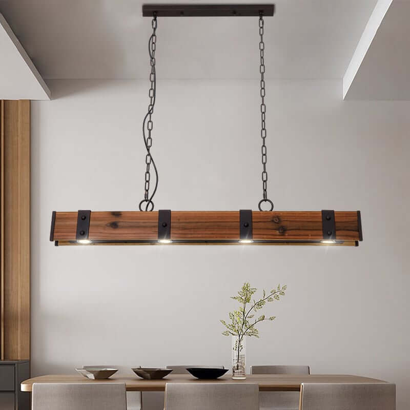 Rustic Wood Linear Island Pendant Light with Adjustable Chain
