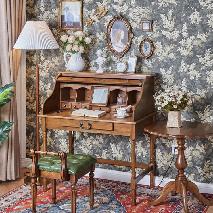 El Escritorio de Tapa Abatible Roble Nogal es más que un mueble; es una celebración de la artesanía y el diseño atemporal. Imagina la conveniencia de tener todos tus elementos esenciales al alcance de la mano, perfectamente organizados en los espaciosos cajones. La construcción en roble macizo promete longevidad, asegurando que este escritorio siga siendo una parte querida de tu hogar durante años.