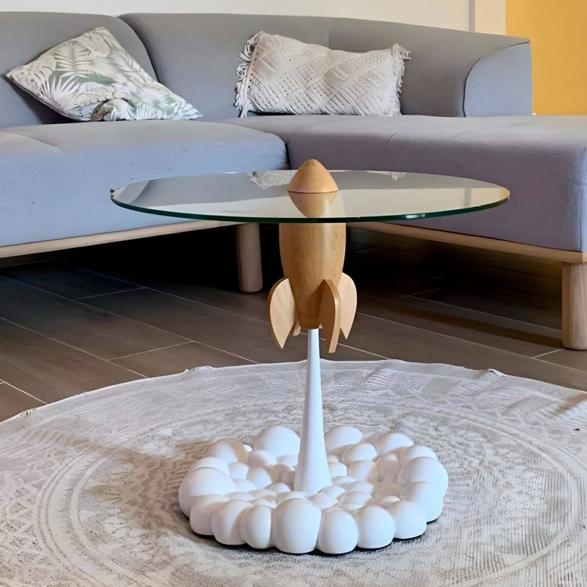 Elevate your living space with this sculptural end table that blends playful imagination and minimalist Scandinavian design. Its clear glass top floats effortlessly above a whimsical white fiberglass base shaped like billowing clouds or rocket exhaust—creating a striking visual anchor beside your sofa or armchair. Crafted for modern homes that value both form and function, this table adds lightness, depth, and a touch of wonder to any room. Whether placed in a sunlit corner or beside a cozy reading nook, it invites curiosity while offering clean, practical surface space.